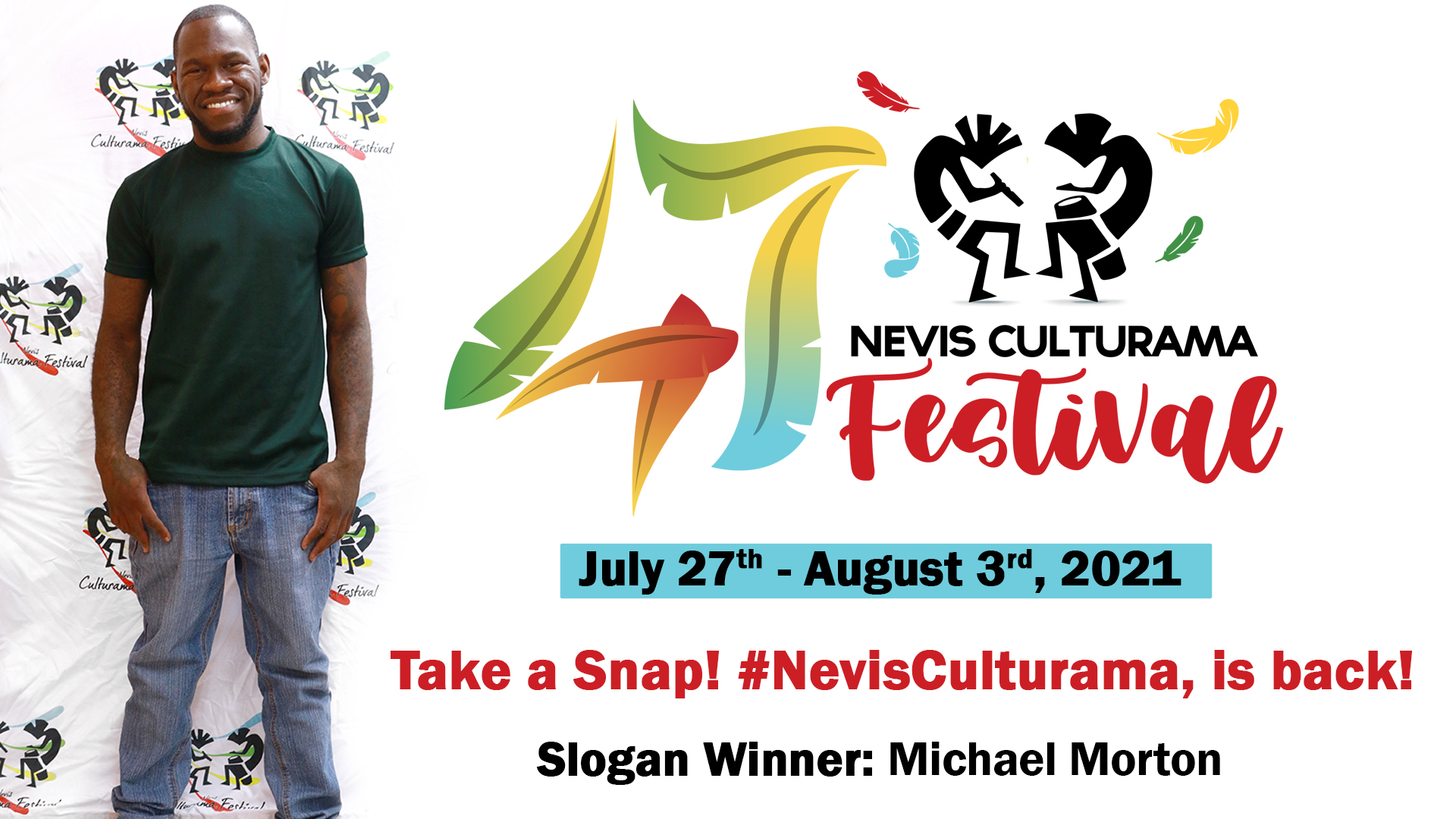 “I am happy to announce that Mr. Michael Morton of Bath Village here on Nevis has penned the winning slogan for Culturama 47, and so the winning slogan for Culturama 47 is “Take a Snap #NevisCulturamaIsBack…and so that would be the slogan that the Nevis Culturama Committee would use for the COVID- compliant Culturama 47 festival to vigorously market and promote the festival,” he said in an interview with the Department of Information.