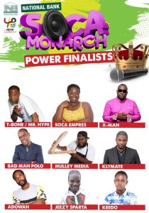 The SKNANB Soca Monarch Power and Groovy Semi-finals were held Saturday, July 16 at Nevis Cultural Village. Making the cut in the Power segment were X-man; Bad Man Polo; Soca Empress; T-Bone featuring Mr. Hype; Klymate; Adowah; Jeezy Sparta; Keedo; and Mulley Media.