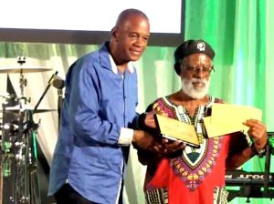 During the ceremony Hon. Eric Evelyn, Minister of Culture in the Nevis Island Administration (NIA), made a presentation to William “Zhumbye Di Ggii”, Patron of Nevis’ Culturama Festival 2022.
