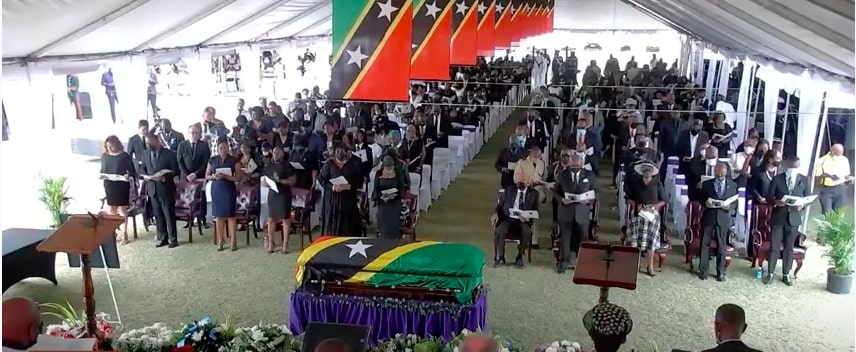 Hundreds of mourners turned out the service, held at the Elquemedo Willett Park in Charlestown, including His Excellency Sir S.W. Tapley Seaton GCMG, CVO, Q.C., J.P.; Her Honour Mrs. Hyleeta Liburd, O. B. E., M. H., Deputy Governor-General; Premier of Nevis Hon. Mark Brantley; members of the Nevis Island Administration (NIA) Cabinet; President and members of the Nevis Island Assembly; Prime Minister Hon. Dr. Timothy Harris; Cabinet Ministers of the Government of St. Kitts and Nevis; members of the National Assembly; visiting government dignitaries; foreign diplomats; persons from the NIA and Federal civil service; members of the business community on both islands; and family and friends.