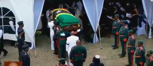 NIA CHARLESTOWN NEVIS (May 01, 2022) – – Former Premier of Nevis His Excellency Ambassador Vance W. Amory, J.P. was laid to rest with full military honours at the cemetery of the St. George’s Anglican Church at Hanley’s Road in Gingerland, Nevis on April 30, 2022, following a state funeral service that celebrated his life, legacy and public service.