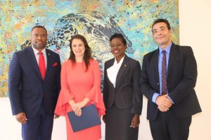 NIA CHARLESTOWN NEVIS (May 08, 2018) — Ambassador-designate Extraordinary and Plenipotentiary of the Republic of Kosovo, Her Excellency Zana Rudi, paid a courtesy call to the Office of Premier of Nevis Hon. Mark Brantley on Tuesday, April 24, 2018.