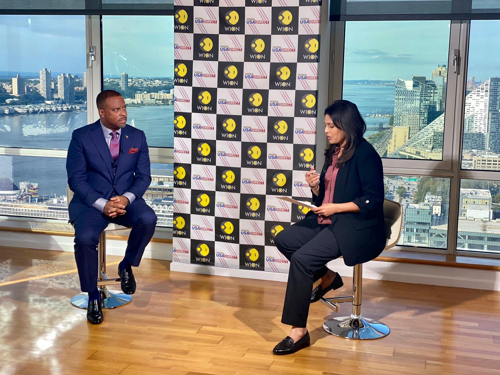 NIA CHARLESTOWN NEVIS (September 26, 2021) – – Minister of Foreign Affairs and Aviation of St. Kitts and Nevis, Hon. Mark Brantley, met with Palki Sharma Upadhyay, the Executive Editor of WION TV in an interview on September 25, 2021, to discuss a plethora of issues surrounding the COVID-19 pandemic, climate change, the growing Indian community in St. Kitts and Nevis and the Caribbean, trade and other issues.