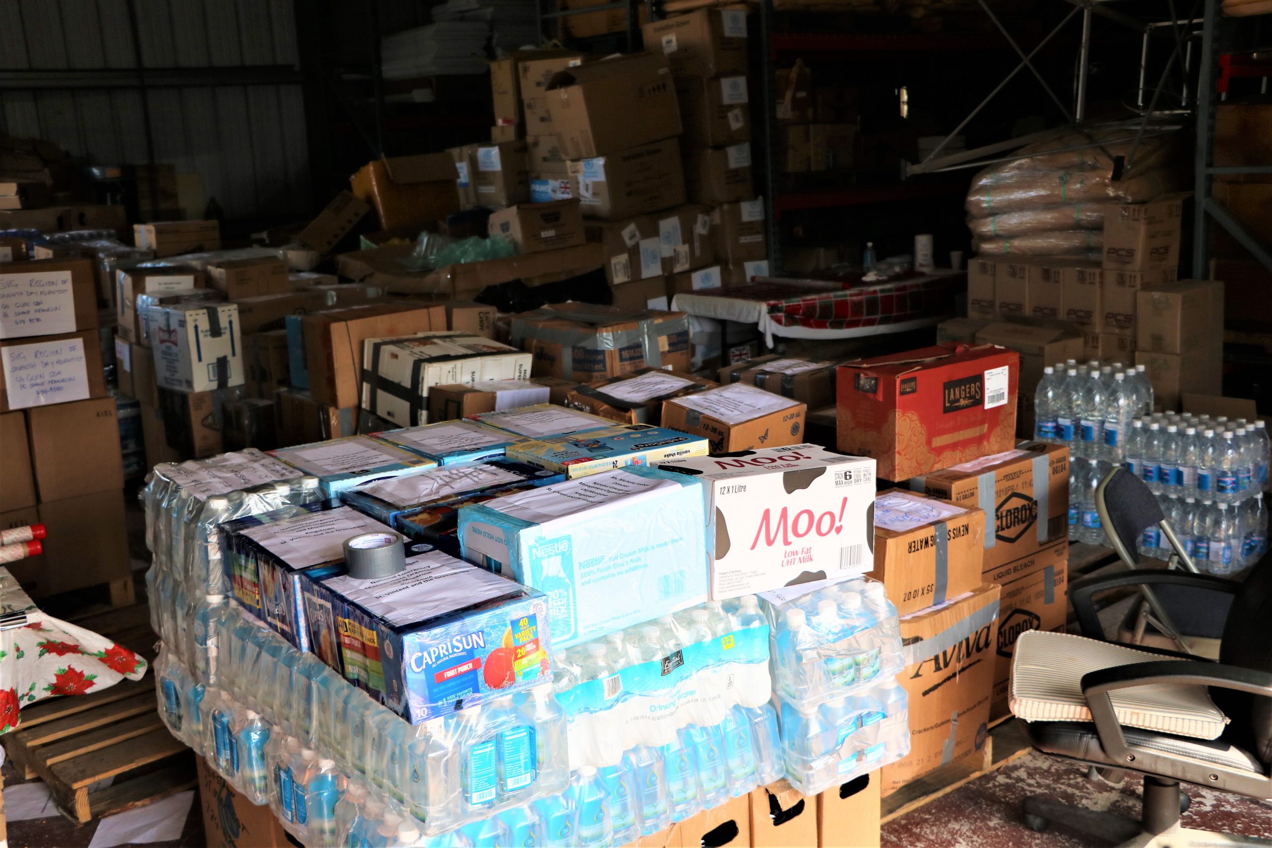 “We shipped over 1500 cases of water, we had 17 pallets of food, and we had a significant amount of toiletries and hygiene products, so we maximized the two containers,” he said.