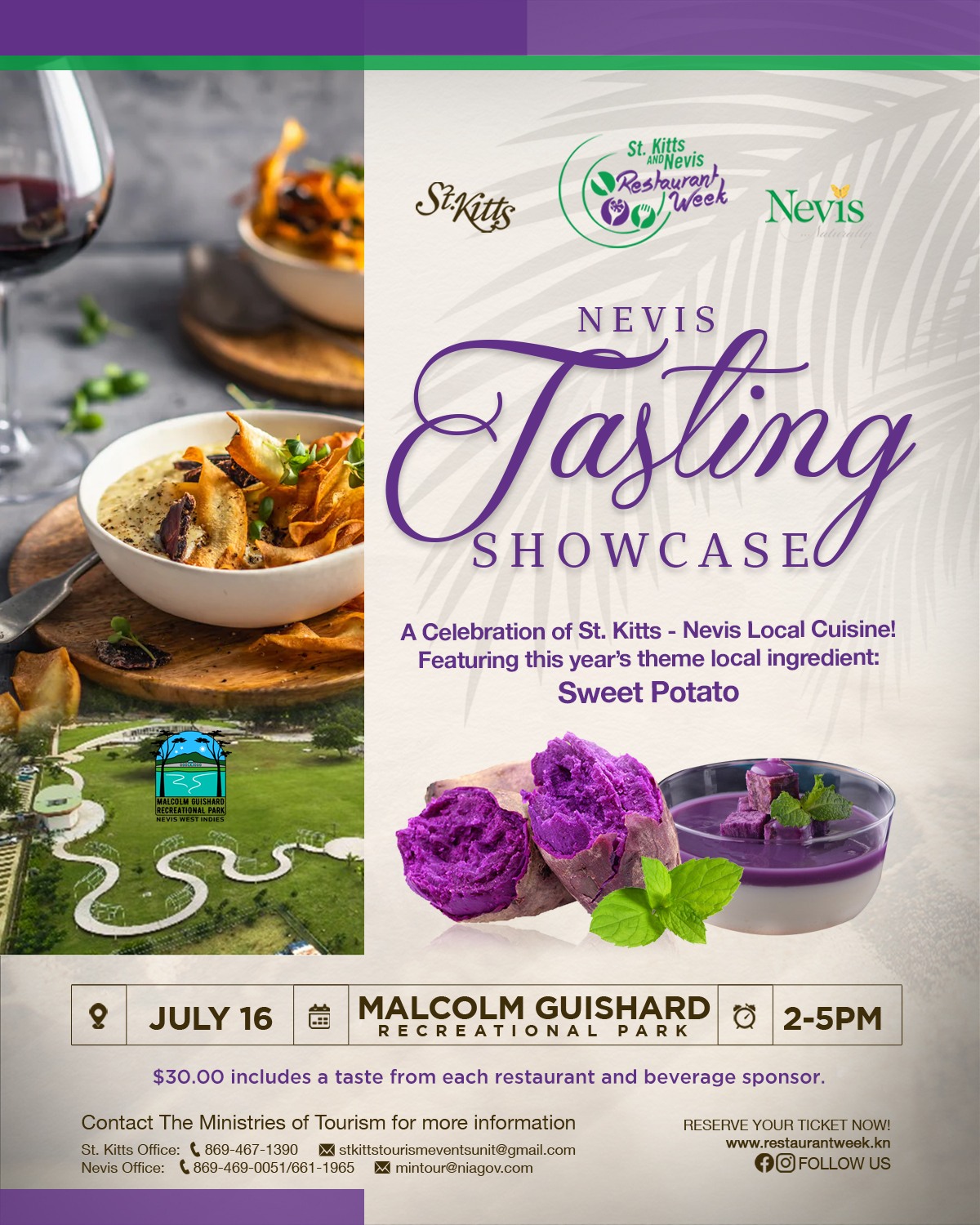 NIA CHARLESTOWN NEVIS (July 14, 2022) – As part of the activities for Restaurant Week 2022, the Ministry of Tourism on Nevis will host its Tasting Showcase on Saturday, July 16, 2022 at the Malcolm Guishard Recreational Park.