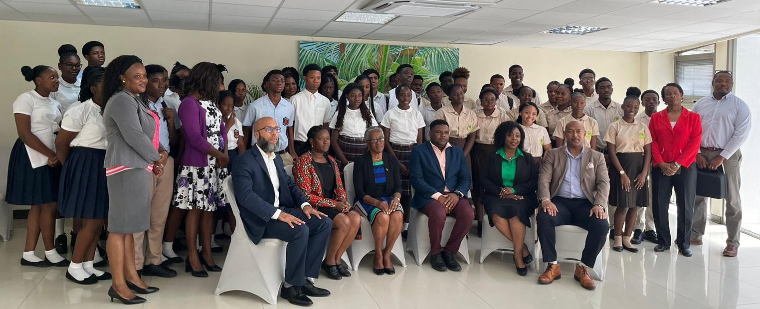 NIA CHARLESTOWN NEVIS (April 25, 2023)- Third to fifth form students of the Gingerland and Charlestown Secondary Schools, as well as students from the Nevis Sixth Form College, were given the opportunity to engage with a number of Ambassadors from St. Kitts and Nevis during a panel discussion organized by the Ministry of Foreign Affairs in the government of St. Kitts and Nevis as one of the activities to celebrate Diplomatic Week 2023.