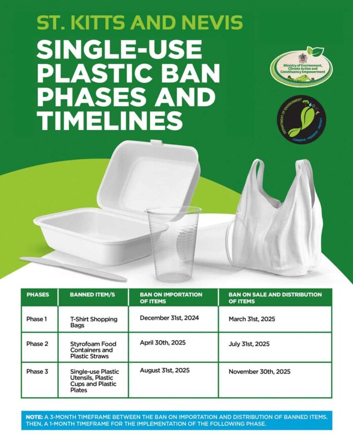 NIA CHARLESTOWN NEVIS (February 18, 2025) – The Department of Physical Planning and Environment in the Nevis Island Administration (NIA) has launched a comprehensive public sensitization campaign to educate residents and businesses on the phased ban of single-use plastics in St. Kitts and Nevis.