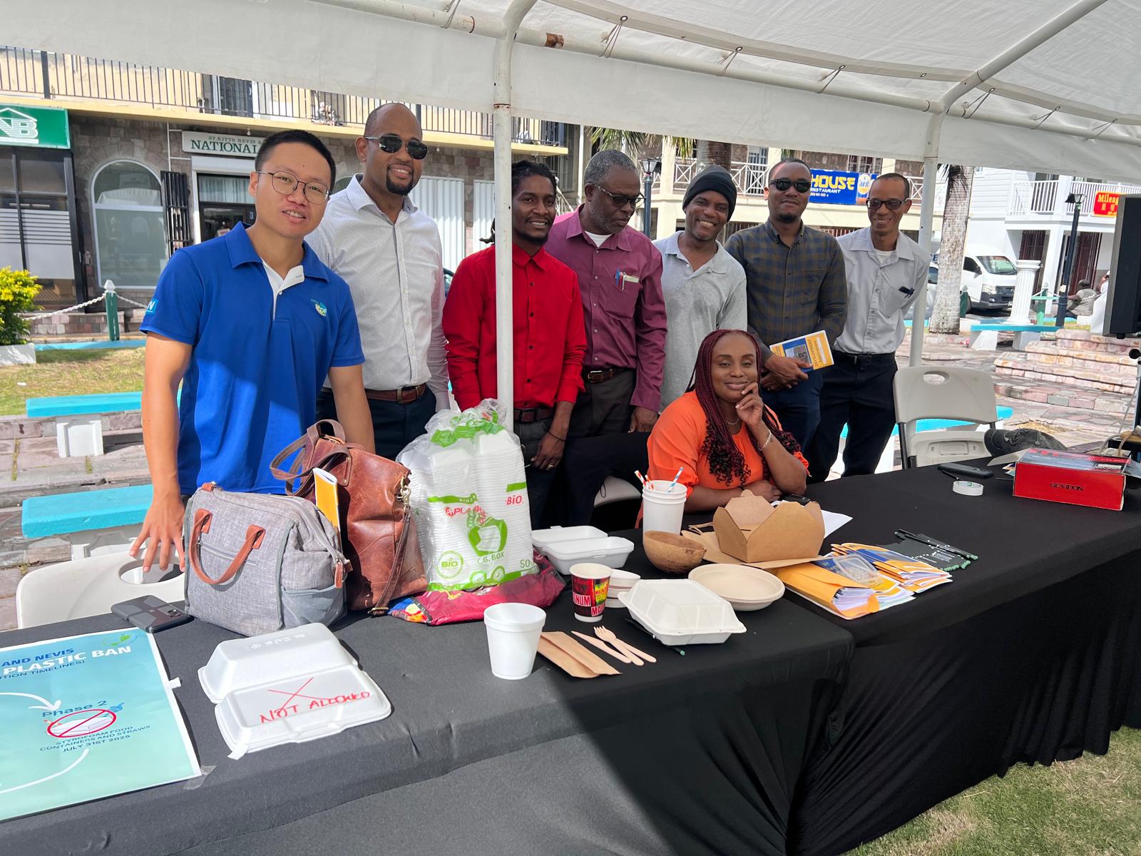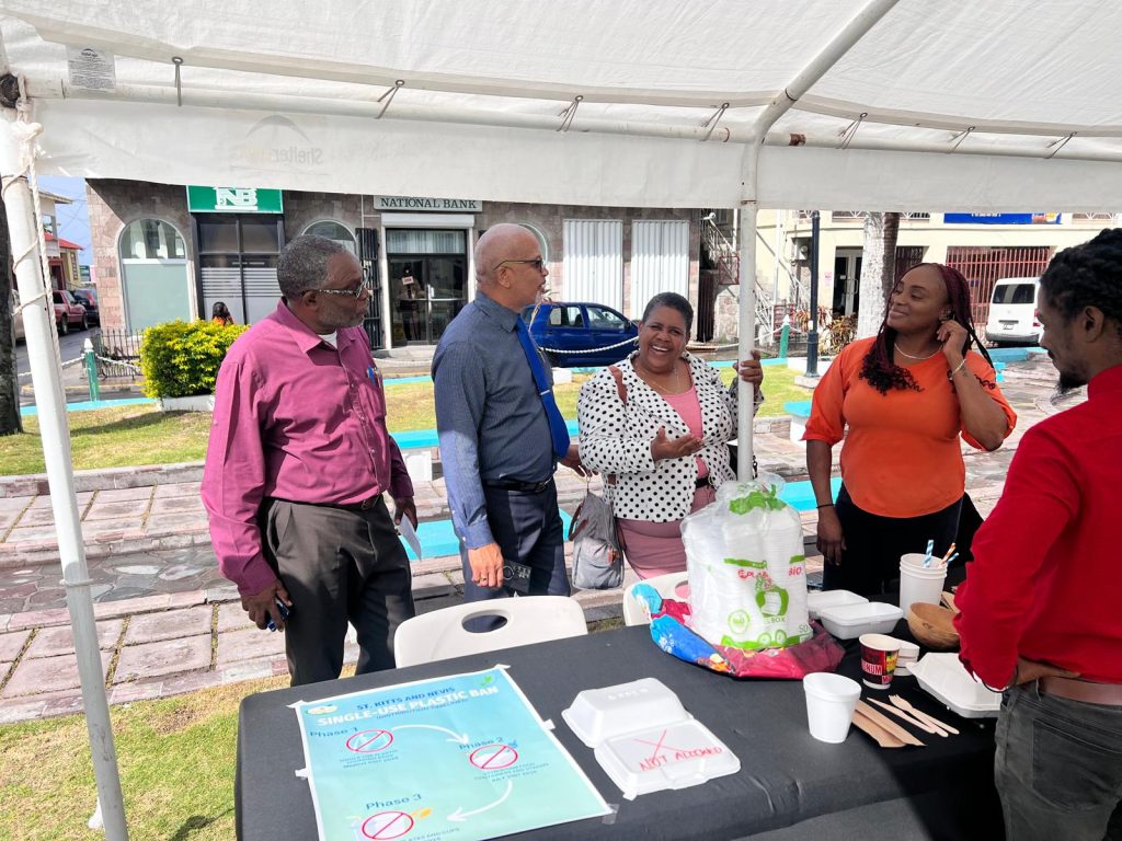 Director of Physical Planning and Environment, Mr. Deora Pemberton, along with department representatives and volunteers, engaged the public during an outreach event in Charlestown on February 14, addressing concerns and clarifying the details of the upcoming ban.