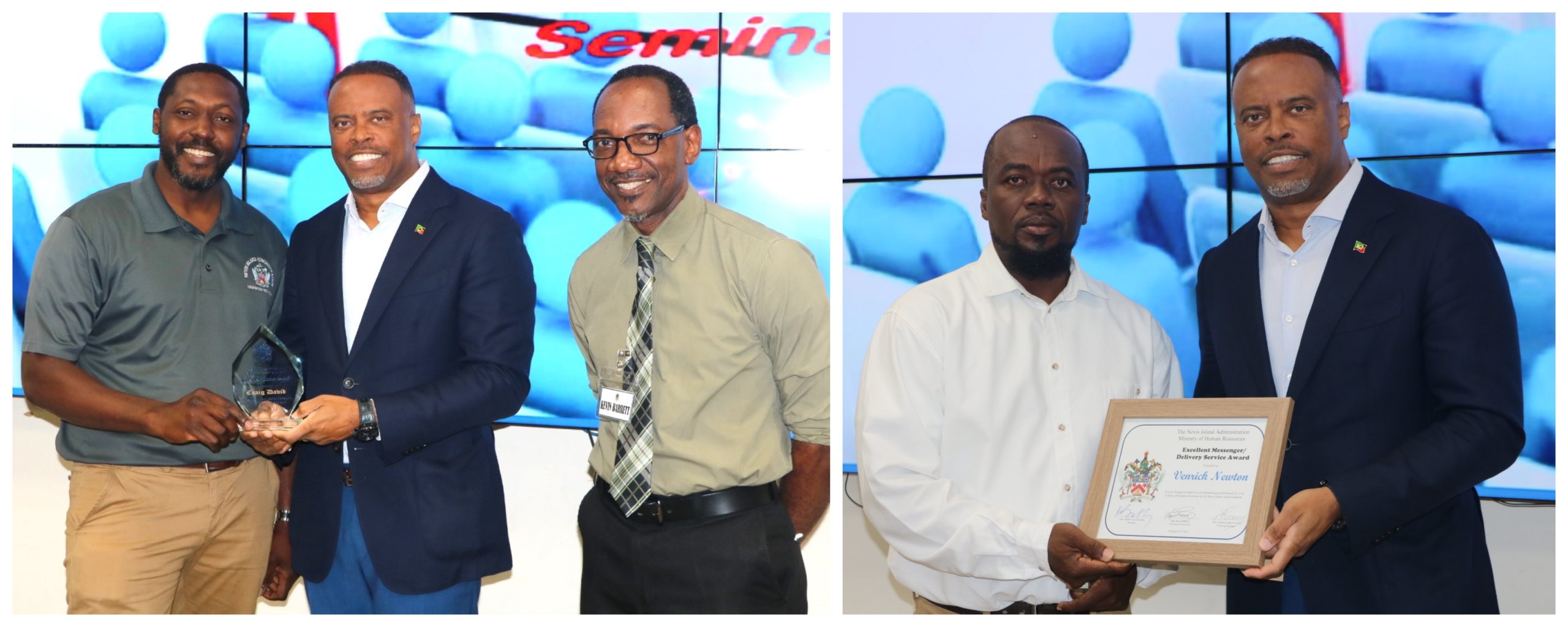 During the recently held NIA Ministry of Human Resources 2025 Orientation Seminar, Training Officer Mrs. Shanola Murray-Gill announced Venrick Newton, Craig David, and Ezekiel Parris as the honourees. She highlighted their contributions and the reasons behind their recognition.