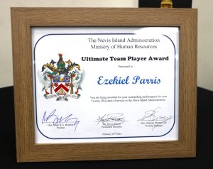 Each honouree received a plaque and gifts of appreciation, presented by Premier of Nevis, the Honourable Mark Brantley, Minister of Human Resources, and Permanent Secretary in the Ministry of Human Resources, Kevin Barrett.
