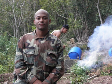 CHARLESTOWN NEVIS (March 30, 2010) – A total of 562 high breed marijuana plants were uprooted and destroyed by members of the Special Task Force, Nevis Police Division in the heights of Nevis on Monday. Officer in charge of the eradication operation Corporal Irvin Bradshaw made an appeal to the youths of Nevis.