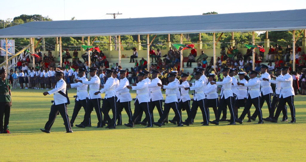 Hundreds of persons turned out to the event to witness the armed and unarmed forces, civic organisations, and students from all public schools perform precision drills during the March Past and Inspection of the Parade. More than nine thousands persons at home and in the Diaspora viewed the ceremonial parade online.