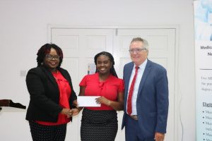 “Once again thank you to the Medical University of the Americas and the Nevis Island Administration for this generous contribution to my educational development,” she said. Her parents, Mr. Oscar Walters and Mrs. Cleo Walters were on hand at the auspicious occasion.